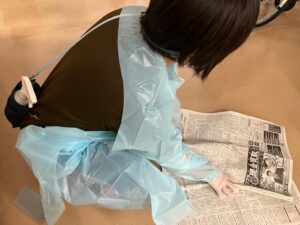 感染症対策研修ではノロウイルス(疑いも含めて)での嘔吐があった場合の対処の仕方を実践勉強しました。